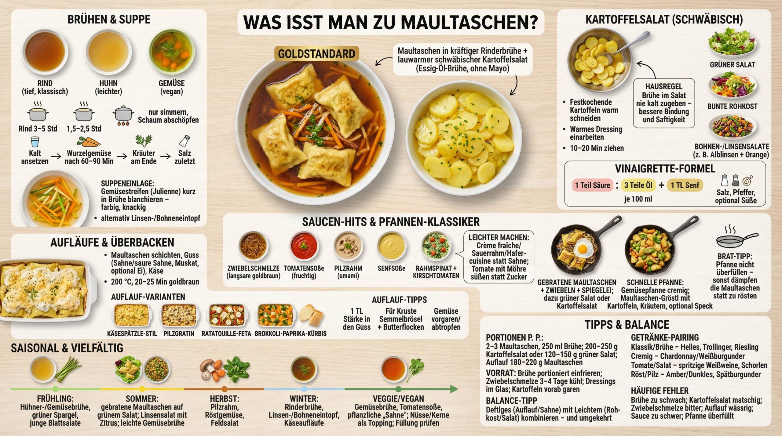 Was isst man zu Maultaschen: Dein kompletter Guide zu Beilagen, Saucen, Suppen und modernen Varianten